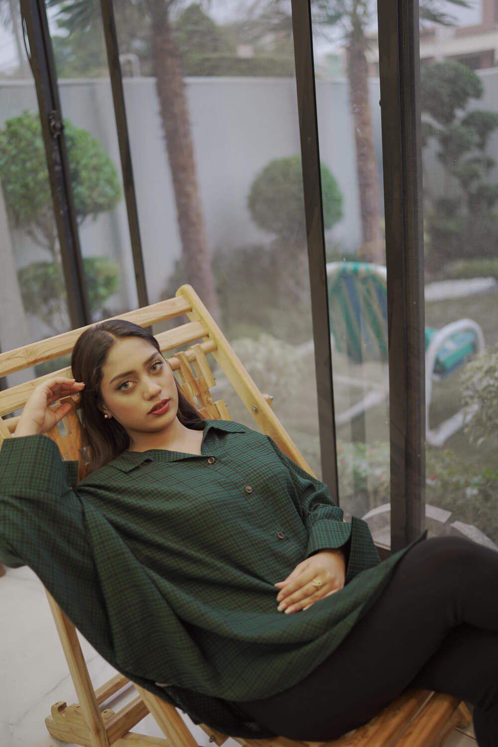 A relaxed-fit button-down shirt in a deep emerald green tone, designed for everyday ease and understated style. The soft drape, classic collar, and front button detailing make it a versatile piece that works just as well for lounging as it does for casual outings. Comfortable, breathable, and effortlessly put together.
