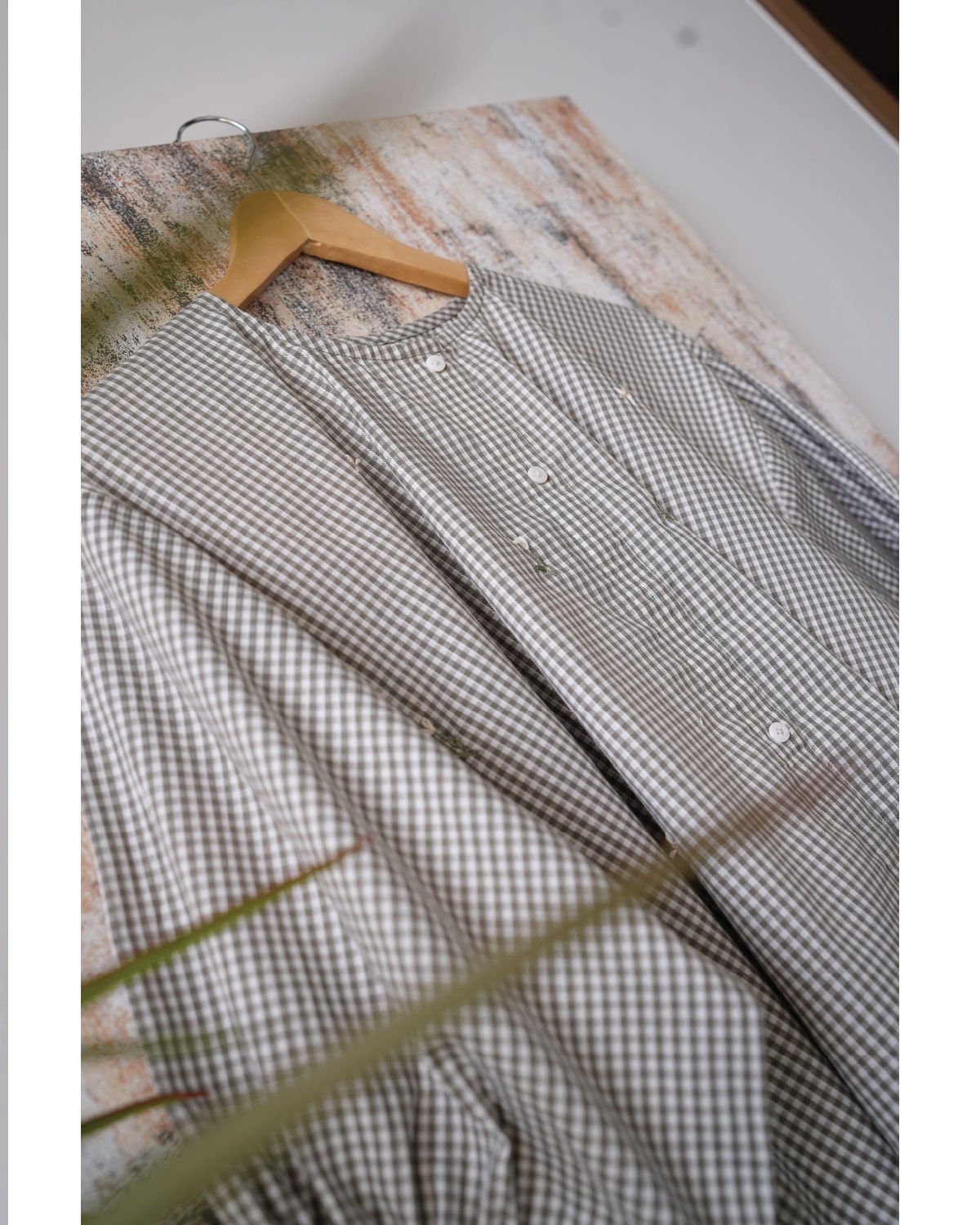 Description: A pastel green check shirt crafted in soft cotton and stitched in a loose, relaxed silhouette. The highlight lies in its chunnat sleeves & delicate floral spread, adding a gentle statement to an everyday staple. Finished with a clean button-down front, it’s the perfect blend of comfort and quiet style — ideal for easy days.