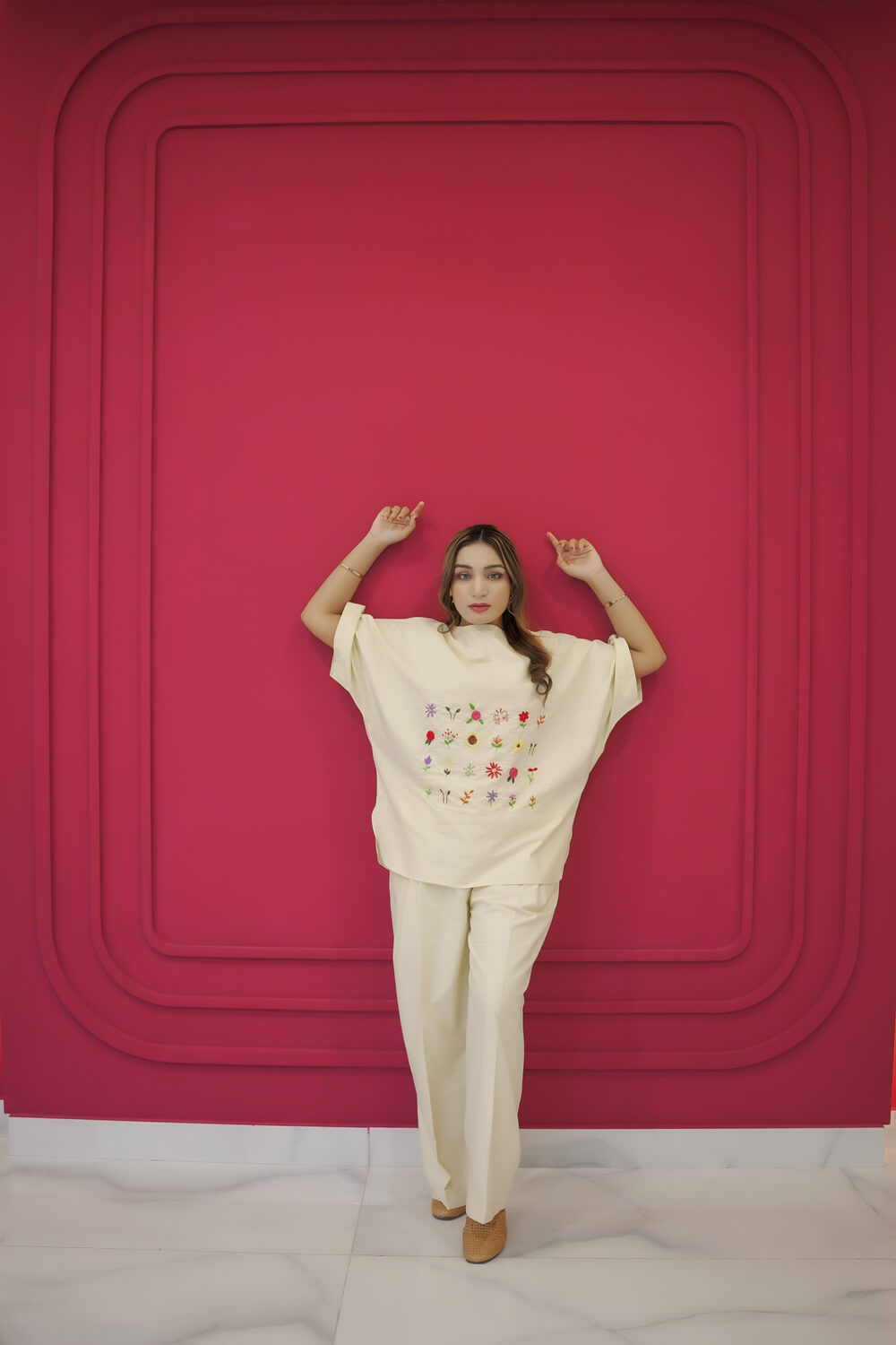 The Threaded Blooms Co-Ord features a front patch of delicate floral embroidery on a soft ivory base, paired with a relaxed silhouette for effortless wear. Artful, refined, and quietly expressive — a wearable statement for winter days and curated wardrobes.